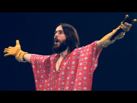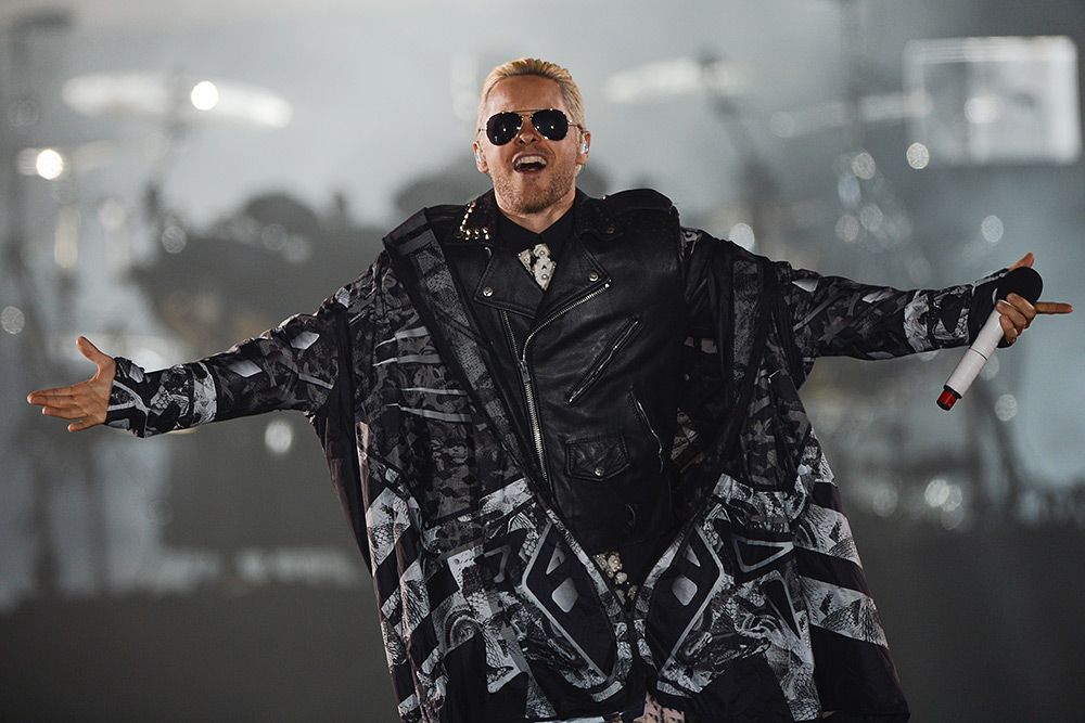 Джаред Лето как проповедник ходил по сцене и дирижировал залом. Сначала указал рукой всем, что нужно присесть. Не сказать, чтобы публика повиновалась этим жестам. Затем крикнул: