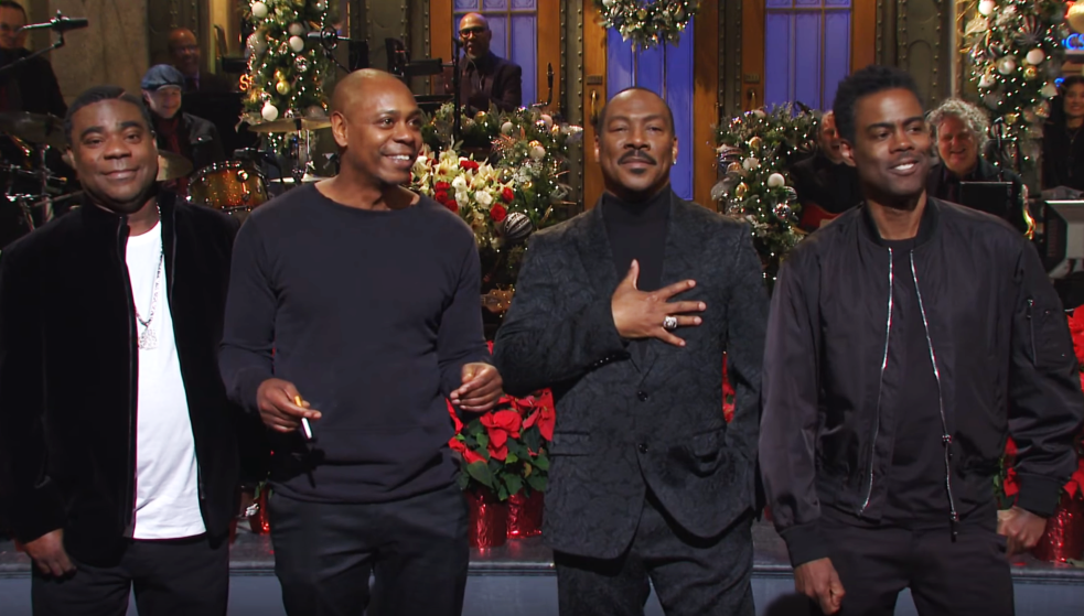 19. Рок был ведущим SNL дважды, в 1996 и 2014 годах, и имел дюжину камео, в том числе когда Дэйв Чаппель 6 первый эпизод после выборов вел первый эпизод после выборов20 и в декабре 2019 года, когда Эдди Мерфи впервые после ухода из состава в 1984 году был ведущим.