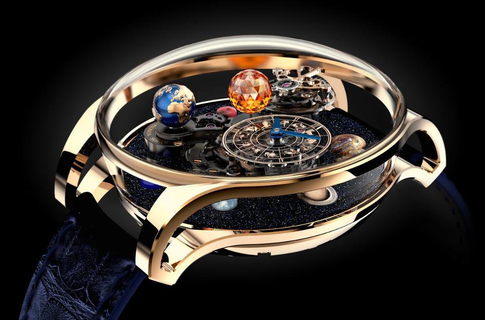 Галерейный циферблат и не менее зрелищную заднюю крышку защищает плоское сапфировое стекло. Каждая часть циферблата, корпуса и механизма собираются и украшаются вручную.