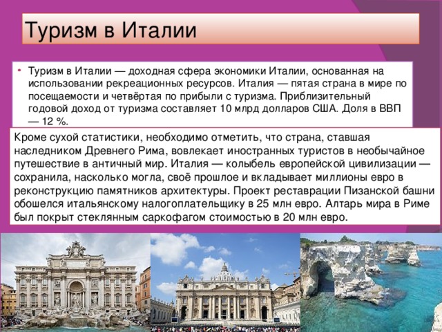 Однажды поехав в Италию, вы поймете, почему так много людей уже раньше, а многие продолжают возвращаться! В Италии много впечатляющих достопримечательностей, от исторических построек до природных ландшафтов.