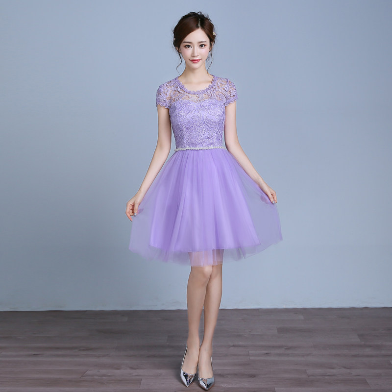 Нежное и воздушное короткое фиолетовое платье создано специально для кокетки. Оно подчёркивает все достоинства стройной фигуры и в зависимости от фасона может быть надето на выпускной вечер или просто на прогулку.