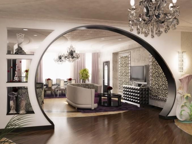 Важным достоинством данного способа служит внедрение декора арки абсолютно в любой стиль.