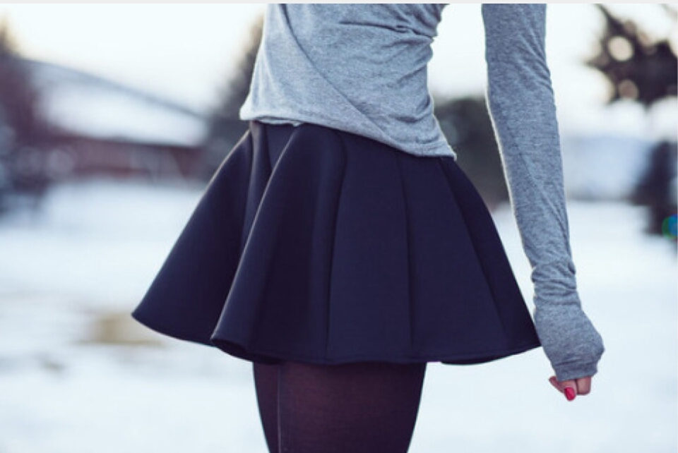 Свободные кофты и толстовки также могут дополнить укороченную юбку-полусолнце;