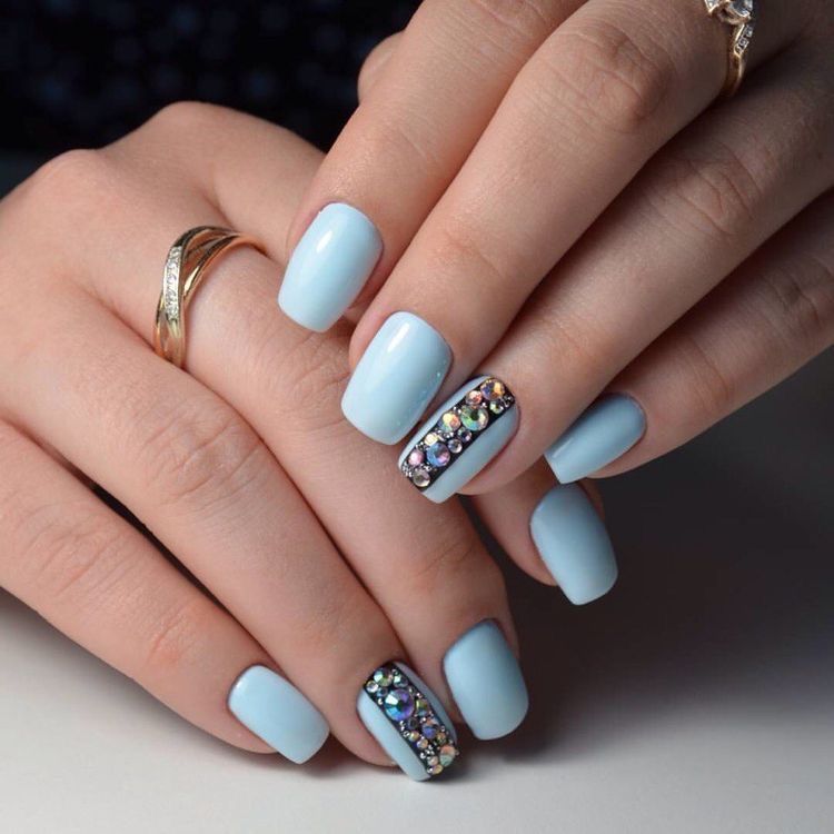 В этом легко убедиться самостоятельно, просмотрев фото маникюра с голубым лаком. Нужно только выбрать подходящий вариант дизайна.