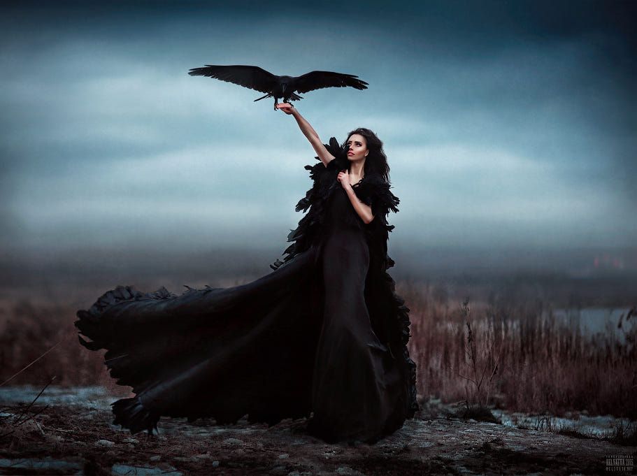 Платье ведьмы с вороном. Хэллоуин. праздник.ПРЕМИУМ