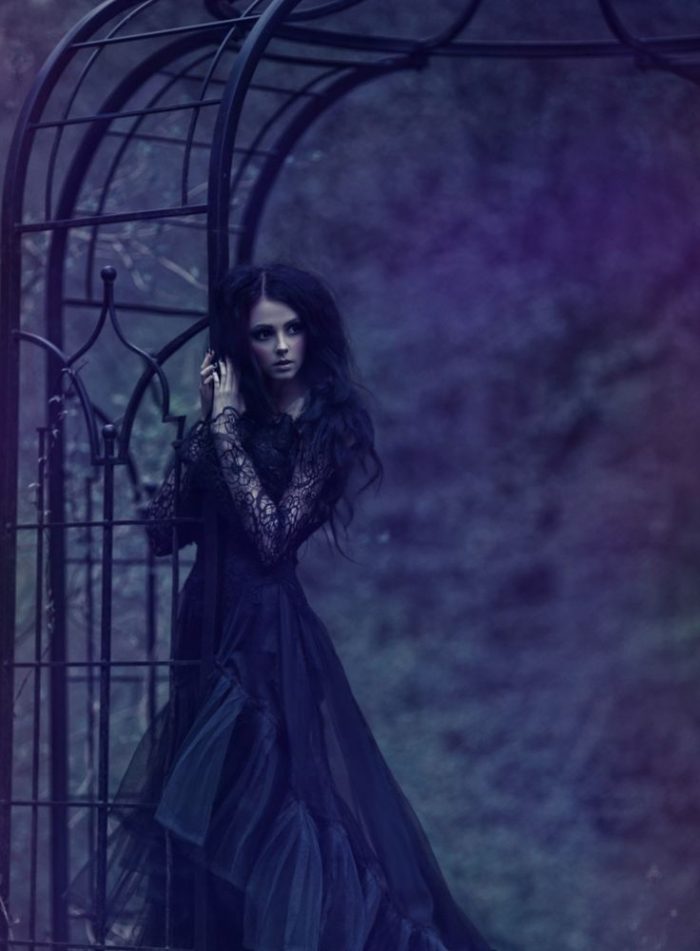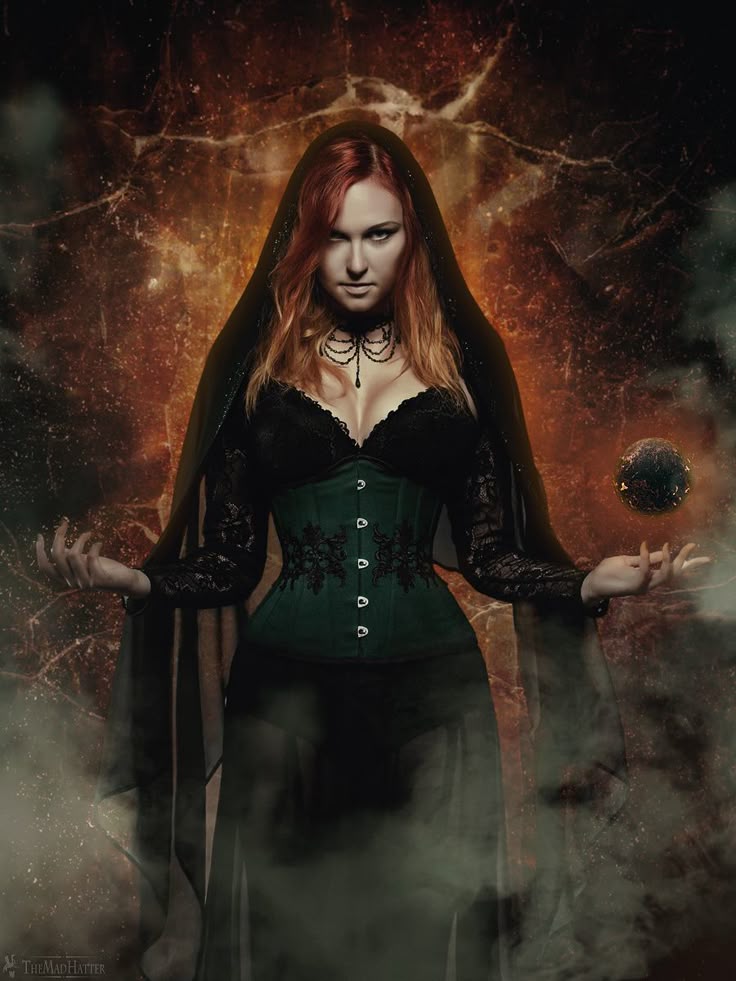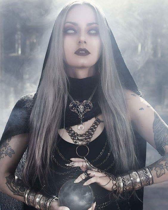 Таинственная фэнтезийная готическая женщина, темная ведьма, одержимая злом.