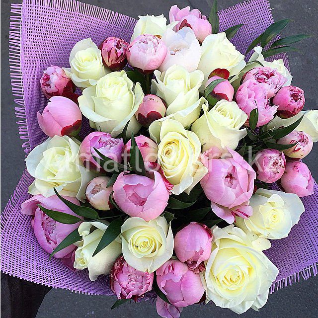 Розовые розы и пионы.