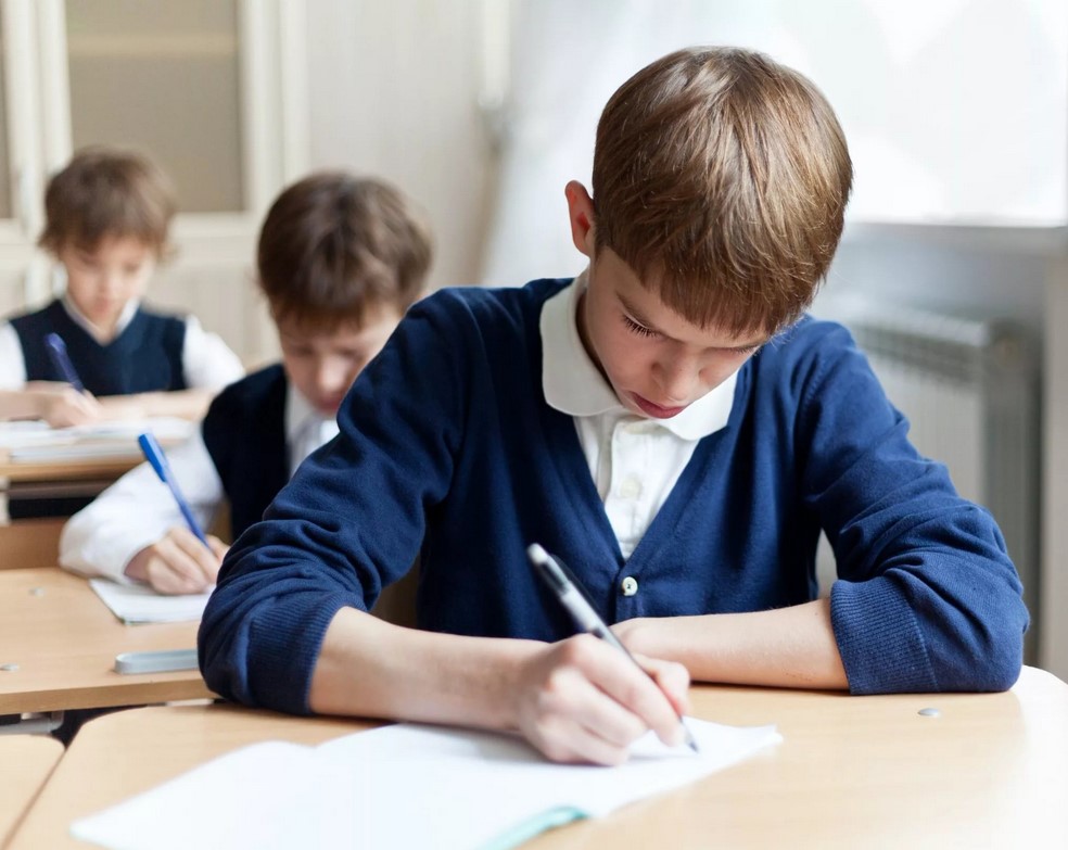На этом фото детки старательно пишут диктант! Такие миленькие ребятки!