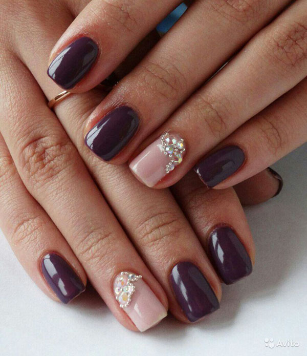 Сливовый маникюр со стразами