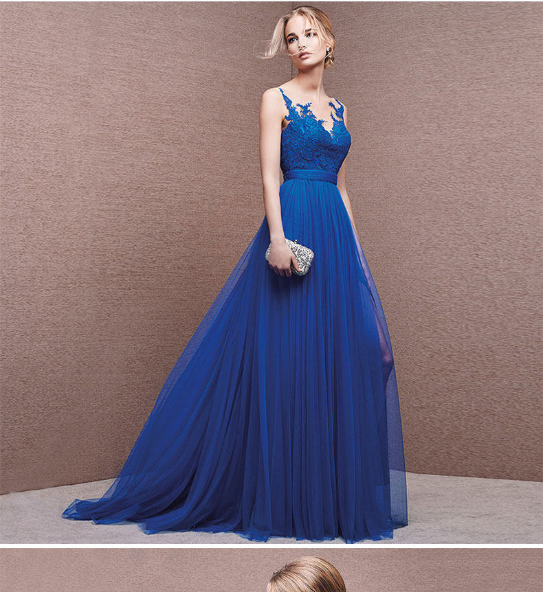 Безупречные синие платья с открытыми плечами, кружевным оформлением, либо обнаженной спиной, которую украшают переплеты, запах и другой декор;