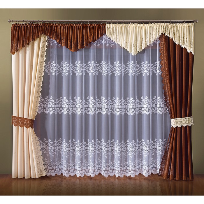 Сочетая гардины со шторами смотрите на вид ткани – натуральные совмещайте с натуральными, синтетические с синтетическими.