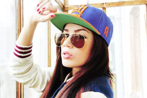 Девушка в кепке и очках.