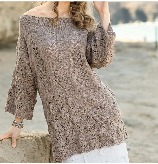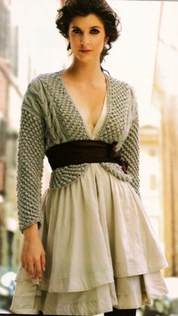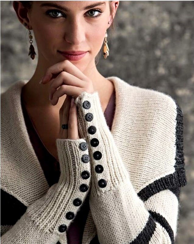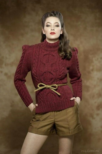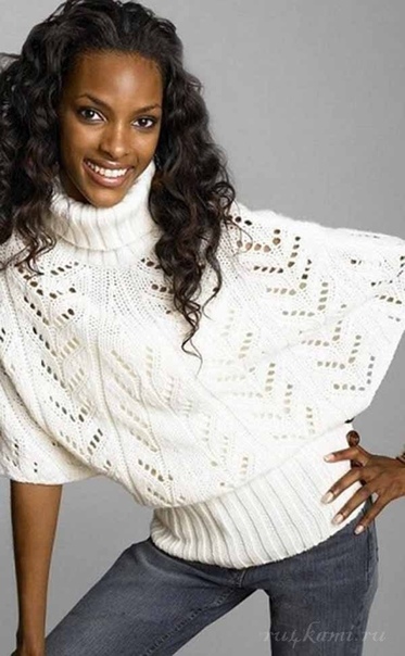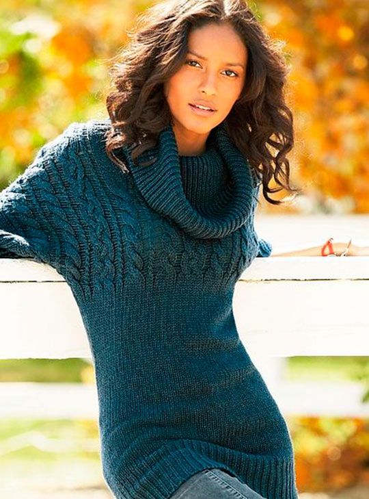 Модницам с менее грузной фигурой разрешено прибегать к варианту крупной вязки рельефных узоров.