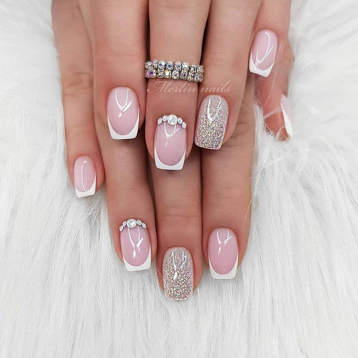 19. Дизайн французского маникюра с белыми блестками для женщин