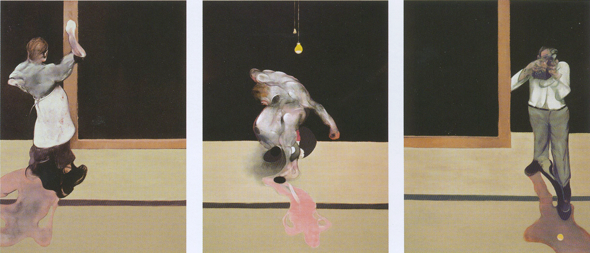 В следующем году, на пике своей славы, Бэкон написал Триптих 1986-7 , три монументальных полотна, которые сливаются воедино. публичные и частные истории в его самом редком и самом знаменитом формате.