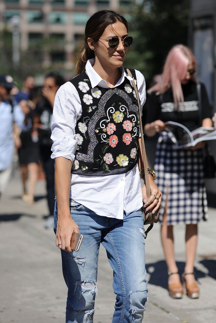 .Этот непринужденный наряд одобрен для It-girl из Лос-Анджелеса.В джинсах-бойфрендах в сочетании с культовыми белыми кроссовками и кожаной сумкой в довершение всего. Ну и конечно полбулочки. Всегда половина булочки.