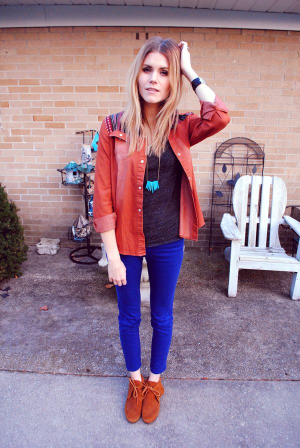 Наиболее популярное сочетание с описываемыми вещами составят джинсы, которые, как уже упоминалось ранее, могут быть абсолютно любых расцветок. Например, черные джинсы будут прекрасно сочетаться с белой футболкой и светло-синей джинсовой рубашкой, надетой поверх неё. А прекрасным дополнением станут черные кожаные туфли-ботинки или кроссовки. Синие джинсы с рваностями, так же составят прекрасный комплект с белой футболкой и джинсовой рубашкой чуть более яркого тона. Завершить образ можно надев коричневые или песочные замшевые ботинки, которые являются несомненным хитом этого сезона. К черным джинсам очень хорошо подойдет светло-серая футболка в сочетании с черно-красной клетчатой рубашкой.