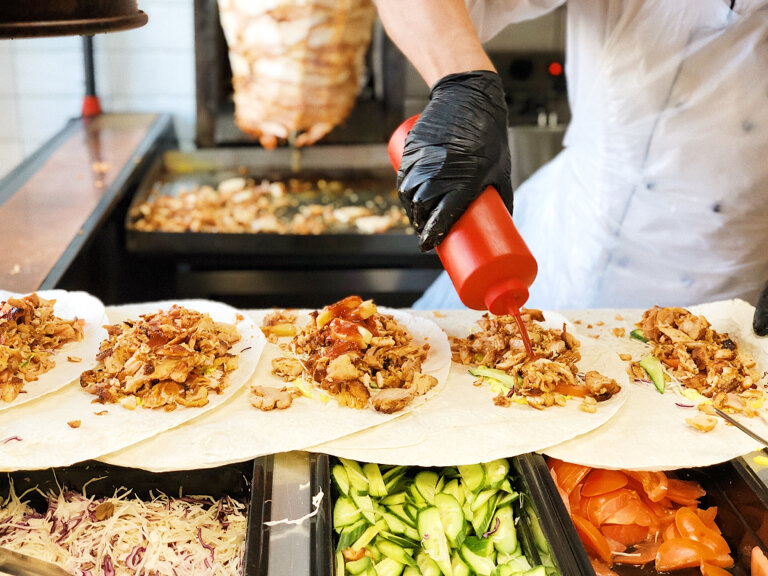 Если вы находитесь в Бэйсуотере, отправляйтесь в киоск с шашлыками на оживленном Квинсуэй, где за несколько фунтов вы можете отведать своего ягненка. Дополните его фиксинами, которые обычно включают перец, помидоры, хумус, тахини и огуречный соус.