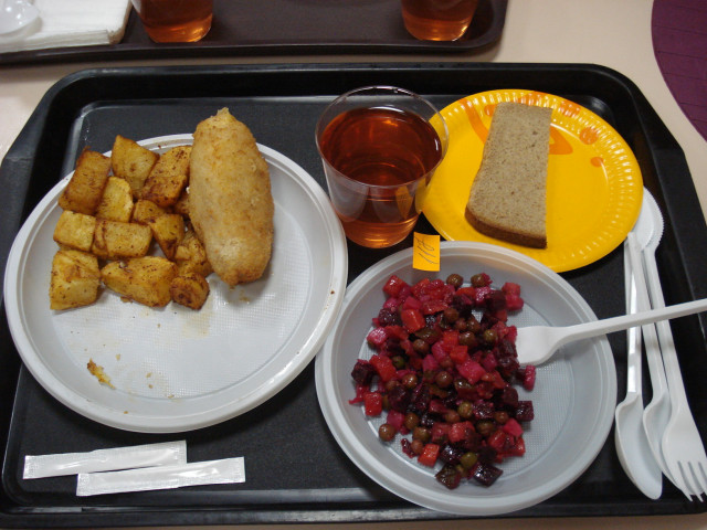 Поэтому пойдём ужинать в апартаментах. Стейк рыбы- меч, свежие овощи, мы купили на рынке Балларо, вино, сыр, специи — в гипермаркете Ашан, осталось только приготовить рыбу и за стол…