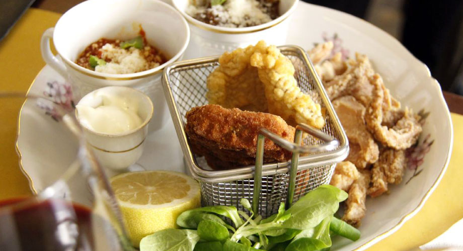 Так называемое куоппо (что в переводе с неаполитанского диалекта значит «бумажный конус») — классическая уличная еда, которую обязательно стоит попробовать, прогуливаясь уличками Неаполя.Фактически, это сочетания самых разнообразных жаренных продуктов (овощей, мяса, рыбы и даже сладостей). Среди самых популярных миксов — морской (из морепродуктов) и земной (из овощей, рисовых шариков, поленты, омлета). Не менее востребованы люди из куриных наггетсов, крабовых клешней, оладьев, покрытых шоколадом или вареных орехов.