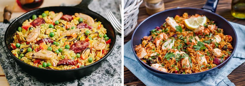 Паэлья состоит из нескольких основных ингредиентов – бобов (четырех разных видов), курицы, кролика, улиток и, конечно же, риса! Вы можете найти все виды паэльи в Валенсии, наиболее популярными из которых являются паэлья из морепродуктов .