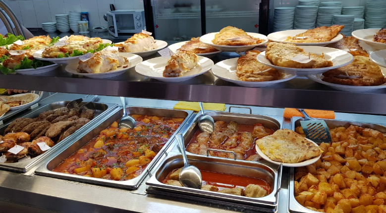 На обед подают меню — специальное предложение. Летом в такое меню-предложение дня часто входят испанские супы: сальморехо, гаспачо.