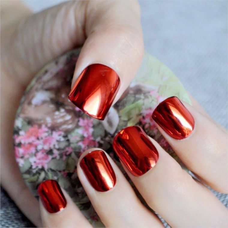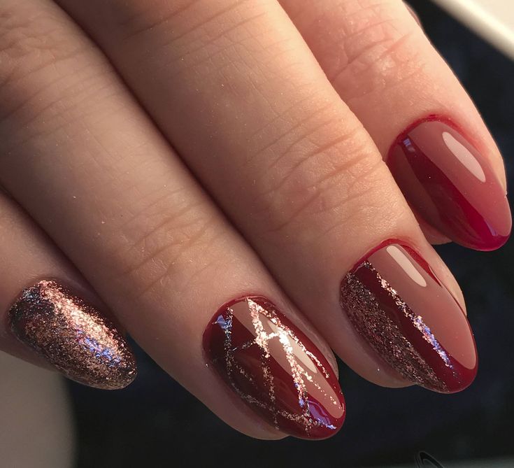 Осенью и зимой большей популярностью пользуются темные разновидности красного: винный, пурпурный, рубиновый, бургунди, гранатовый, бурый, оттенок красного дерева. Используйте любой из них соло, сочетайте с лаками других условно осенних цветов (особенно эффектно они рифмуются с золотым или медным).