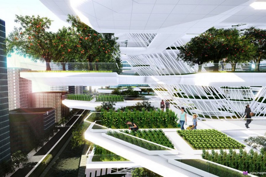 Все трассы и пешеходные дорожки были спроектированные так, чтобы попасть в любую точку города можно было максимум за 20 минут. Город будущего должен был получать энергию из солнечных панелей и гидроелектро станций, планировалась установка собирателей дождевой воды для полива садов и очистки улиц.