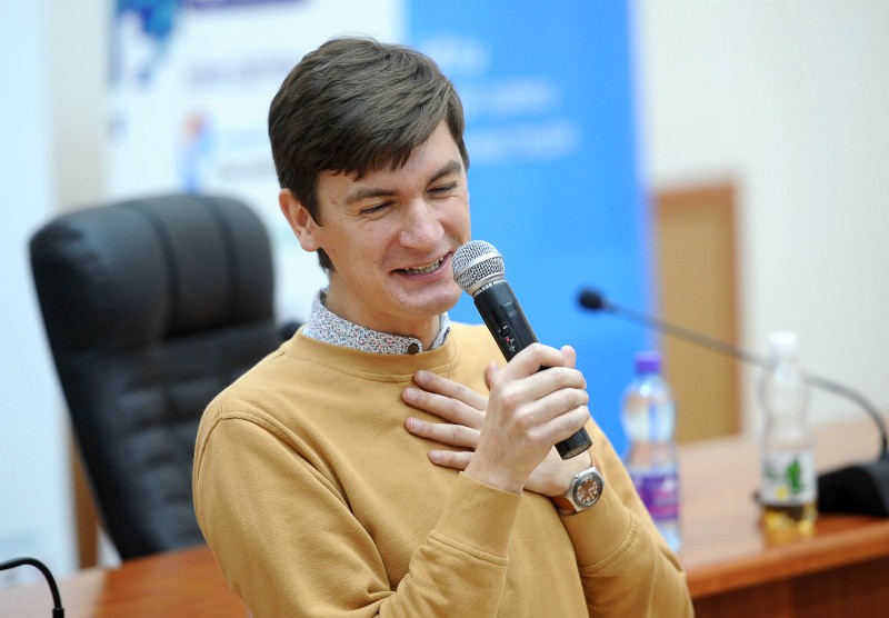 В столице Кубани лидер команды КВН «Федор Двинятин» провел мастер-класс. Говорит Александр Гудков в жизни так же, как со сцены. С московским акцентом, громко, много смеется над собой и всем, что вокруг.