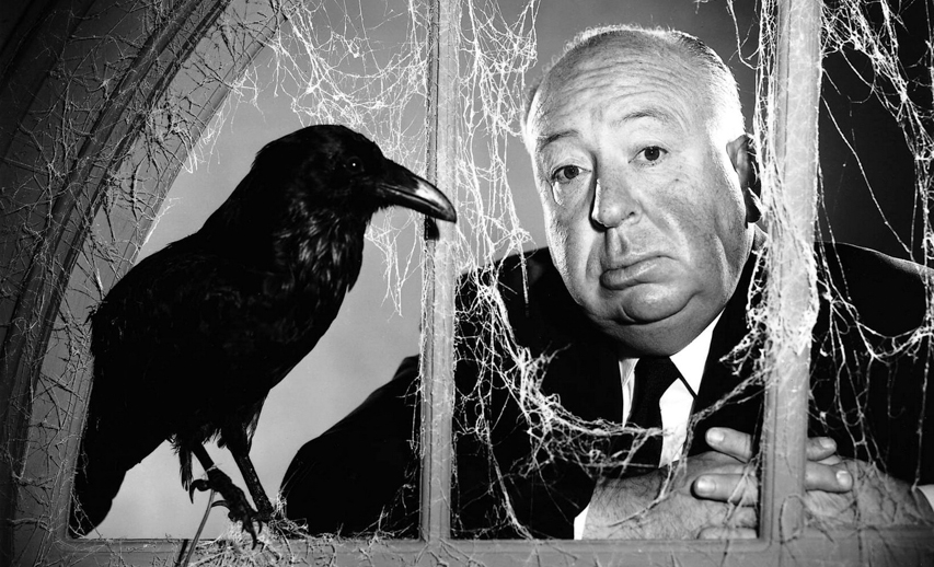 Альфред Хичкок с птицами
