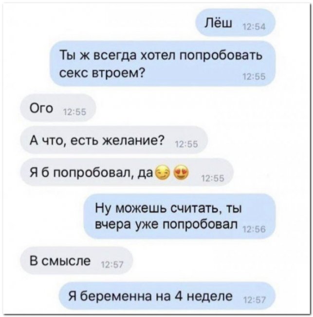Вы попробуйте с двумя мужиками, но без мужа, вам понравится)