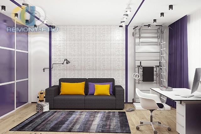 - Спорт. Многие мальчики увлечены просмотром различных состязаний, занимаются самостоятельно спортом. Интерьер детской комнаты, связанный с тренировками, символикой, известными спортсменами, признается стимулирующим волю к победе, командный дух. Цветовая гамма тематической группы: яркие, волевые краски, повторяющие известные спортивные символы.