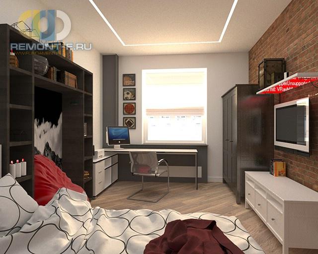 Комната в стиле лофт – один из самых актуальных и беспроигрышных вариантов. Это небрежные отделки и грубые поверхности, металл, камень и дерево, создающие «гаражную», индустриальную атмосферу. Лофт отлично подойдет для целеустремленных, свободных духом и творческих мальчиков.