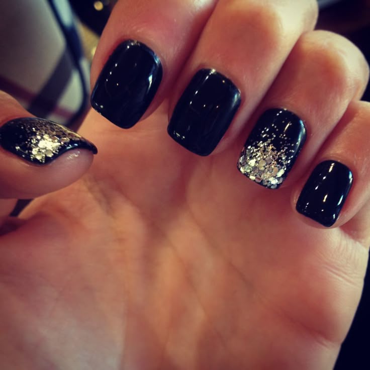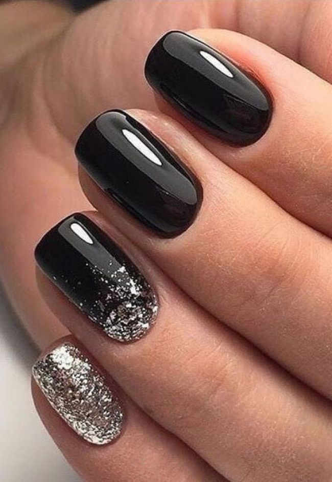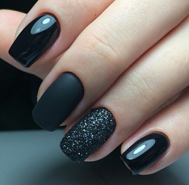 21. Элегантный черный дизайн ногтей sЗдесь у нас есть элегантный дизайн, с которым можно поиграть. Дизайн включает два черных сплошных гвоздя с двумя блестящими золотыми гвоздями.