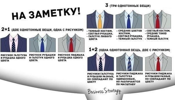 Среди общих рекомендаций по сочетанию галстука и костюма можно отметить ряд базовых правил, без которых получить удачные сочетания не получится.