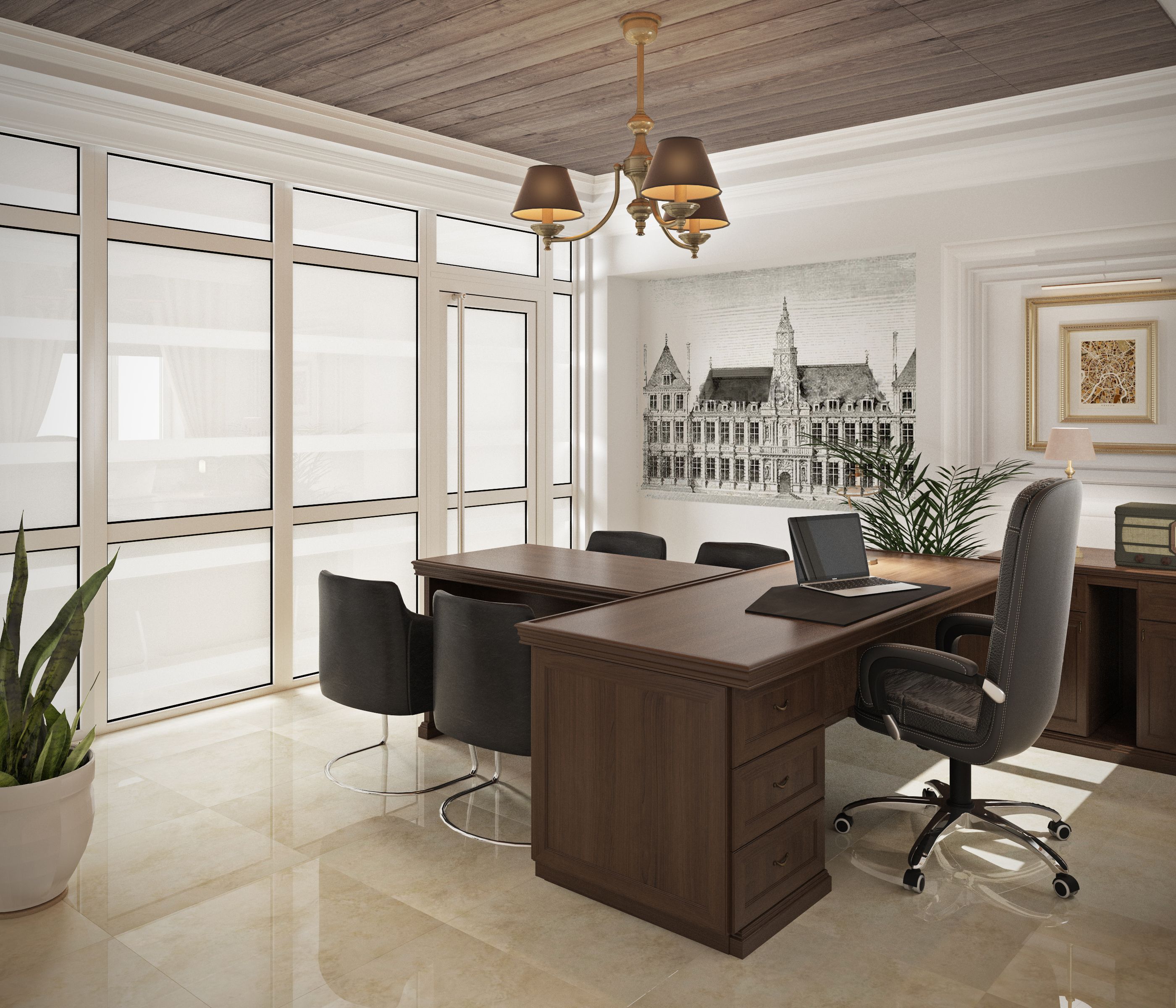 Если это кабинет в офисе, в котором предстоит находиться в течение рабочего дня, принимать деловых партнеров и вести переговоры, то, возможно, для создния интерьера надо воспользоваться услугами профессионалов.
