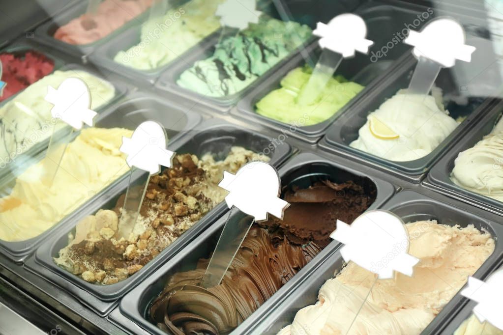 Исключение составляют виды мороженого с послойным внесением нескольких натуральных красителей, создающих заданный производителем рисунок.