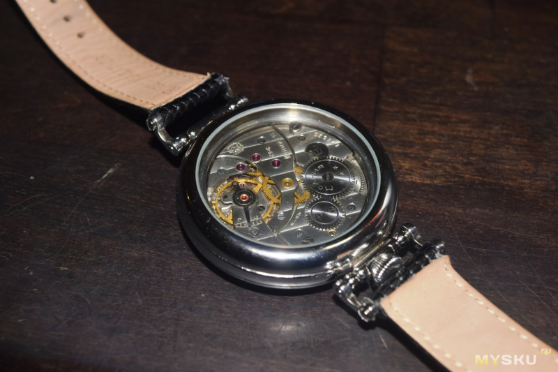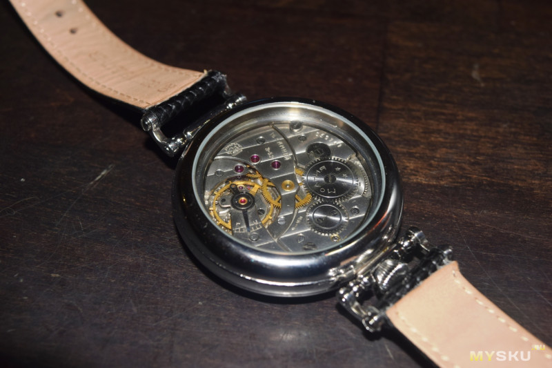 После того как все «ингредиенты» моего нового проекта были у меня на руках я отнес их к знакомому часовому мастеру, который провел профилактику механизма и собрал часы. Мастер из «старой гвардии», советских часовщиков и что то новое, ему не интересно, так что синить термической обработкой часовые винты не умеет, а жаль. Ранее пробовал сам, но ничего толком не получилось, найти человека в своем городе кто сможет это сделать – так же пока не удалось, так что вид механизма в часах интересный но стандартно-заводской, если бы были «синие» часовые винты на механизме, вид был бы «нарядней».