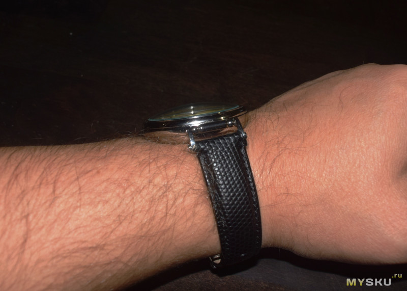 На ремешок пошла очень качественная итальянская кожа, в меру мягкая но не тянущаяся.