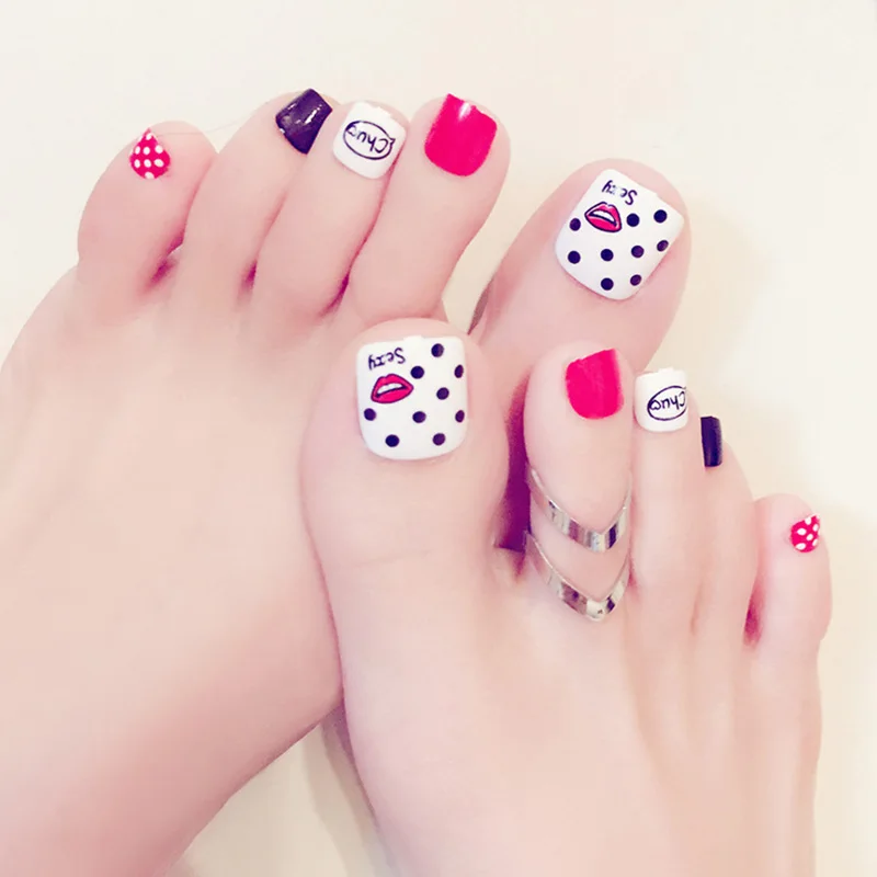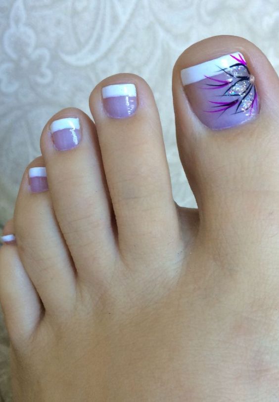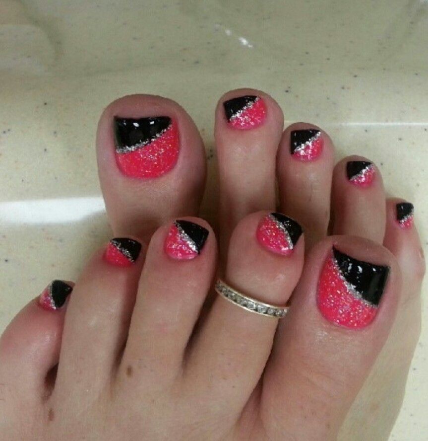 Очень красиво будет смотреться, если сделать окантовку чёрным лаком — это смотрится очень эстетично и элегантно. Сейчас многие французские парфюмерные дома предлагают использование чёрных оттенков. Это, конечно же, выбирает сама женщина, как покрасить ногти на ногах. Самым интересным оттенком является неоновый, с таким лаком педикюр смотрится особенно привлекательно. Вариантов дизайна ногтей очень много, но можно подобрать то, что интересно и привлекательно. На ногтях можно нарисовать какую-нибудь ягоду. Для начала надо сделать фон из лака с блестками, затем акриловыми красками нарисовать ягоду.