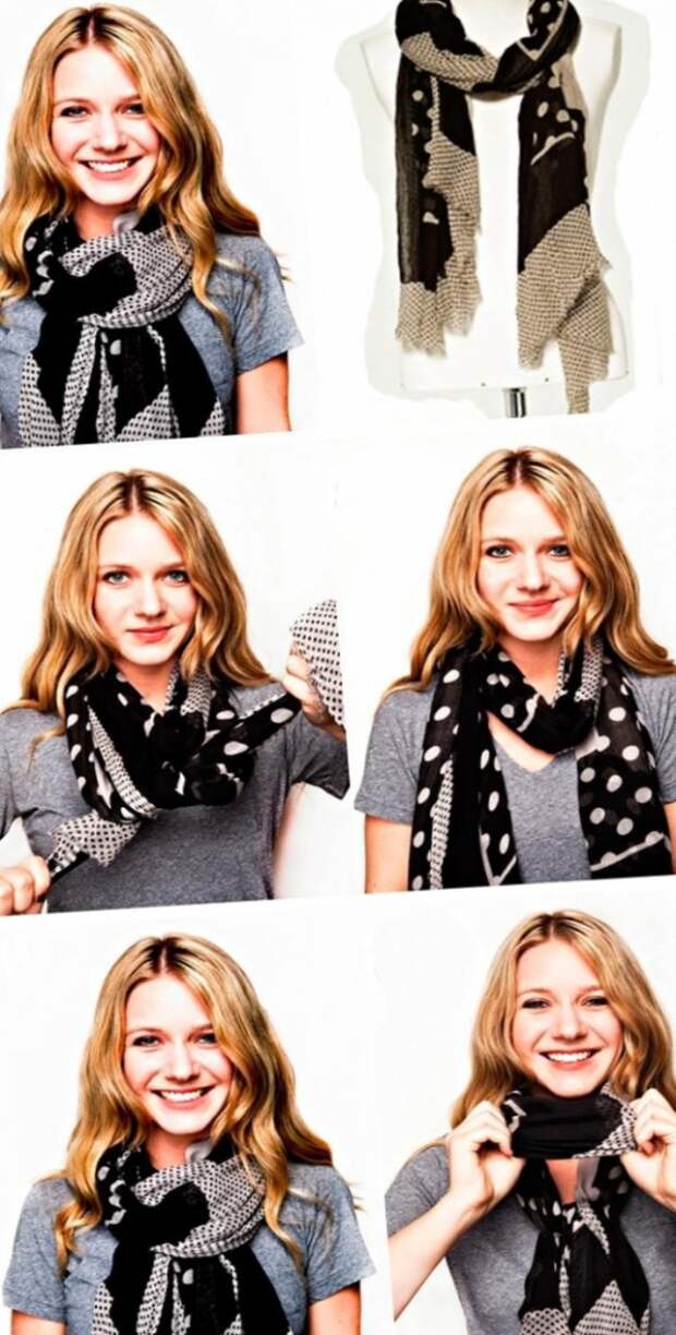 Еще несколько интересных способов повязать платок поверх пальто я прилагаю ниже.