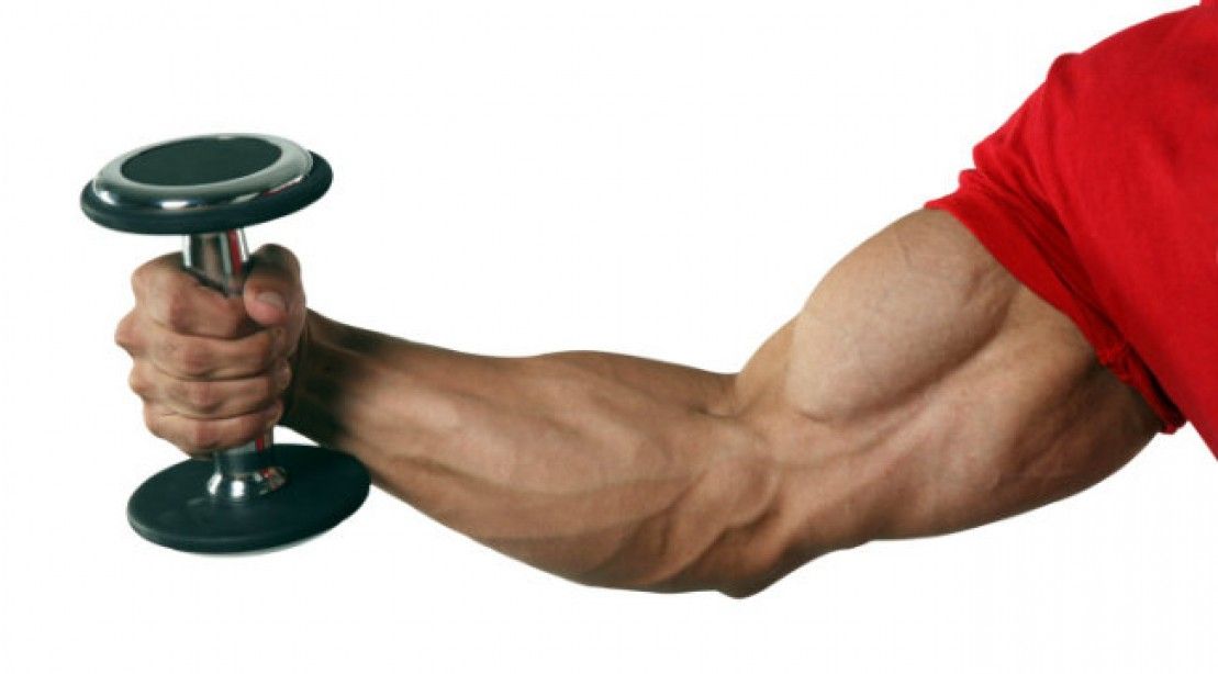 Локоть должен быть слегка наклонен наружу, чтобы акцентировать внимание на плечелучевых мышцах предплечья. Это дает появление более крупных и мускулистых рук.