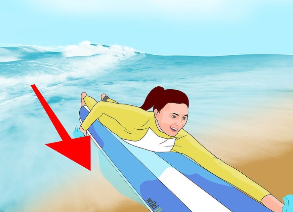 Когда вы увидите подходящую волну, начинайте активно грести.