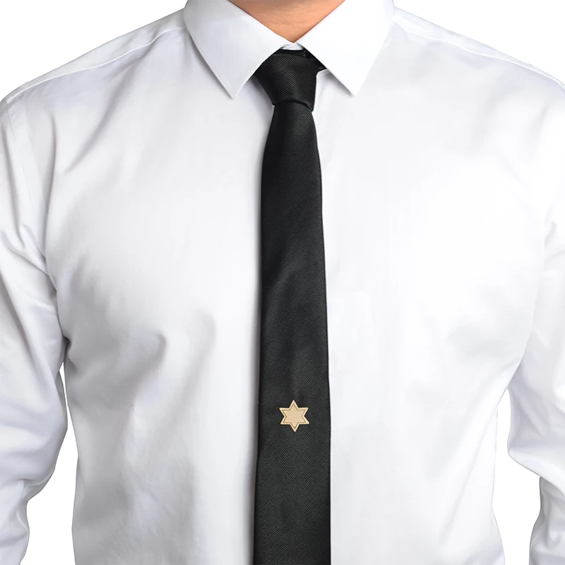 - Зажим для галстука не должен выступать за край галстука. В идеале длина зажима = ширина галстука. Однако допускается небольшое отклонение и зажим может быть чуть короче ширины галстука.