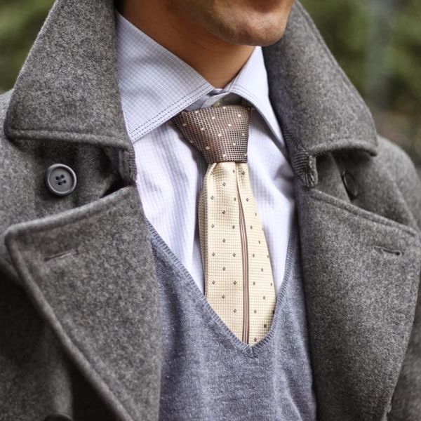 Последнее базовое правило связано с сочетанием зажима с такими предметами гардероба как жилет или кардиган. Считается, что мужчине, который носит рубашку с жилетом или кардиганом, зажим не нужен, так как его функцию выполняет одежда. Жилетка идеально фиксирует галстук от выпадения, поэтому потребность в дополнительном крепеже отсутствует в принципе. Но если зажим для вас — вещица не просто функциональная, а в первую очередь — стильная, носите с удовольствием: и с жилеткой, и с кардиганом, и с чем угодно.