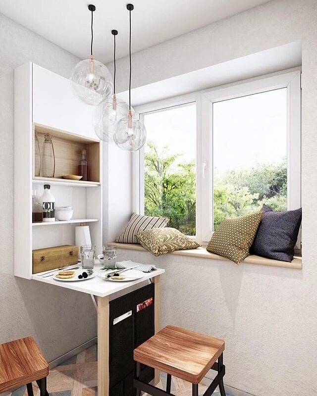А для тех, кто живет один, идеальным местом для обеда может стать даже подоконник – оптимальное решение для экономии места.