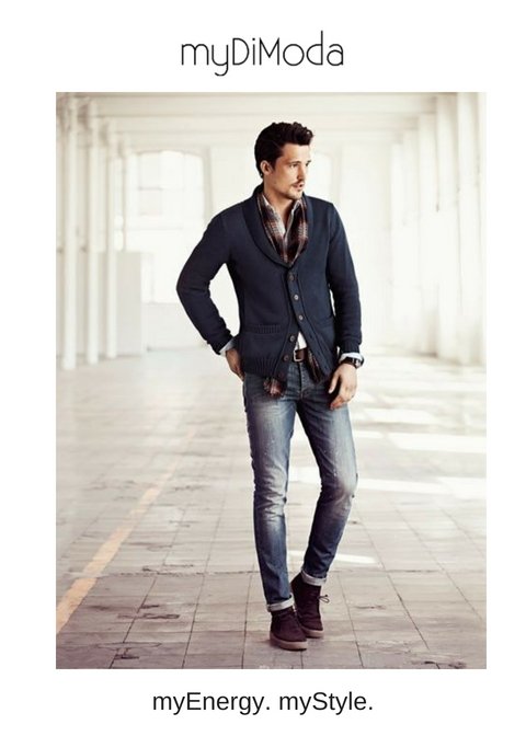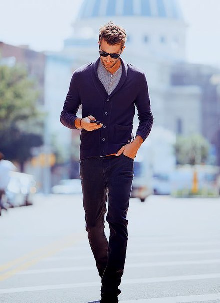 - Вязаный кардиган с воротничком-шалькой. Раньше такие носили наши бабушки и дедушки (да чего там, и сейчас продолжают носить), а потом мода перекинулась на молодняк. По сути, это более удобная альтернатива пиджаку. Так вот, оставьте кардиган на случай, если зимой дома отключат отопление — пригодится. А на улице носите все же пиджак.