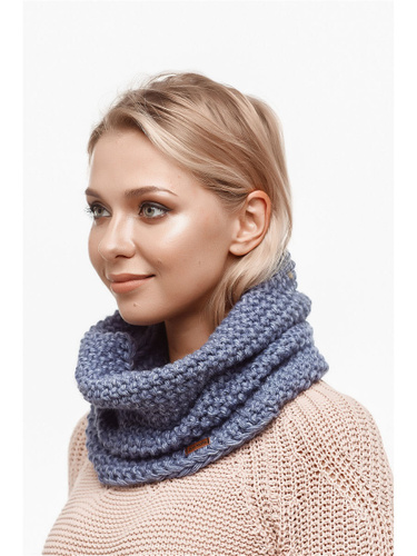 - Зимний шарф-хомут. Для его производства используют толстые нитки с натуральной шерстяной основой. Чтобы изделие не растягивалось и сохраняло нужную форму, в его составе присутствует небольшой процент искусственных нитей. Снуды для зимы должны быть мягкими и тёплыми, желательно связанные крупным узором. Есть снуды из меха – натурального или искусственного. Но в этом случае изделие из меха диктует свои условия: верхняя одежда должна быть подобрана в классическом стиле.