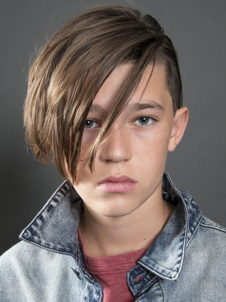 Круглолицему мальчику подойдет стрижка с удлиненной центральной частью и выбритыми висками — она визуально «вытянет» лицо. Если лицо продолговатое, оставляйте на боках побольше волос.