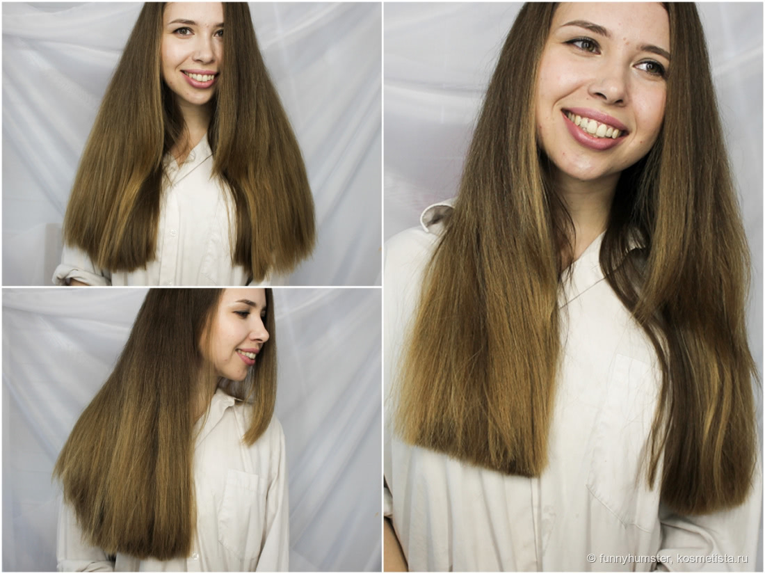 Выравниваем таким образом концы с обеих сторон. Чтобы сделать срез еще более ровным, выпрямите концы утюжком, и еще раз проверьте ровность линии среза и симметричность в длине с обеих сторон.